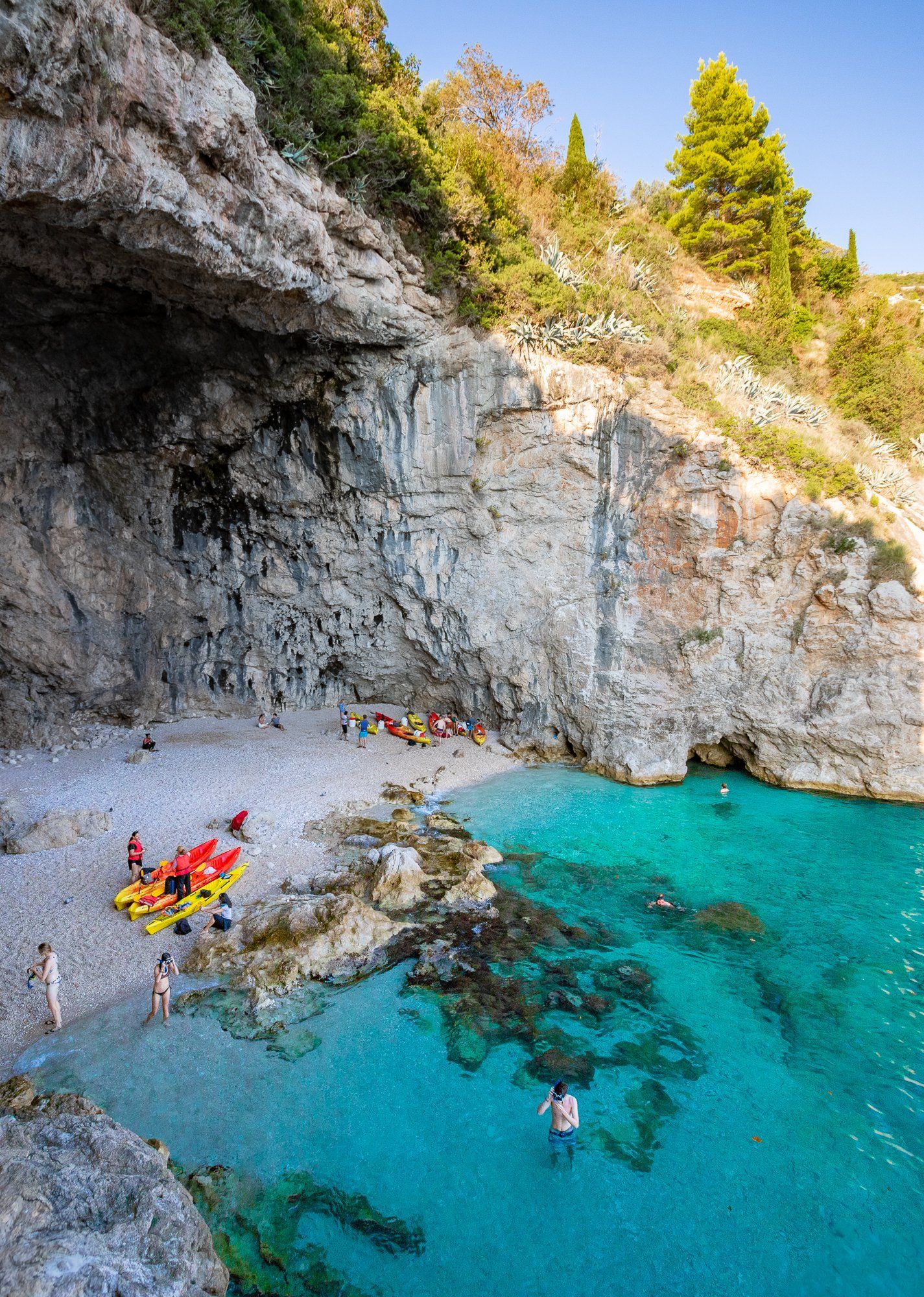 We make numerous stops on the water during the tour, including several stops near the “cursed” Island of Lokrum. The longest stop is at a beach-cave. Once we reach the cave we will step out of our kayaks and onto a beach, where we will break for a refreshing snack, and a bit of snorkeling and sunbathing.